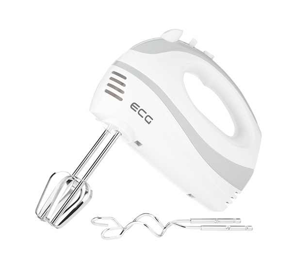 5 stupňová regulace otáček, TURBO tlačítko, tlačítko pro vyjmutí metel a háků, 2 ks šlehacích metel, 2 ks hnětacích háků, příkon 200 W