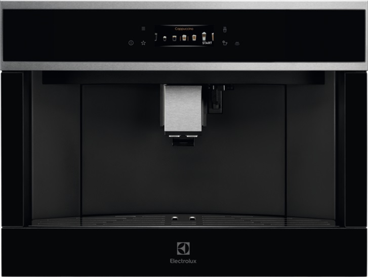 Vestavný kávovar; Electrolux 900 PRO EBC85X; Výška (cm): 45; Ovládání: Elektronické, dotykové; Kapacita mlýnku na kávu (g): 200; Objem nádrže na vodu (l): 1,8; Automatická funkce na přípravu espressa: Ano; Automatická funkce na přípravu cappuccina: Ano; Podsvícení kávovaru: Ano; Barva: Nerez s povrc