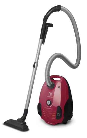 Electrolux PowerForce EPF61RR červený - podlahový sáčkový vysavač • příkon 800 W • hlučnost 76 dB • akční rádius 9 m • objem prachového sáčku 3,5 l • 6m přívodní kabel • omyvatelný hygienický filtr č. 12 • teleskopická kovová trubice • indikátor plného sáčku • příslušenství - univerzální podlahová hubice DustPro, 2v1 prachový kartáč + úzká štěrbinová hubice