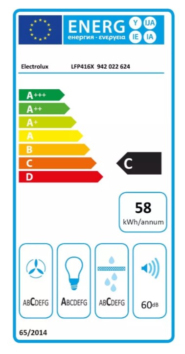 Electrolux LFP416X - vestavná digestoř • odtah nebo recirkulace • 3 rychlosti výkonu • maximální výkon při odtahu 440 m3/h • hliníkové tukové filtry • maximální hlučnost 60 dB • tlačítkové ovládání • LED osvětlení • šířka 60 cm