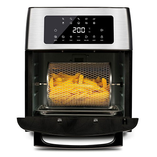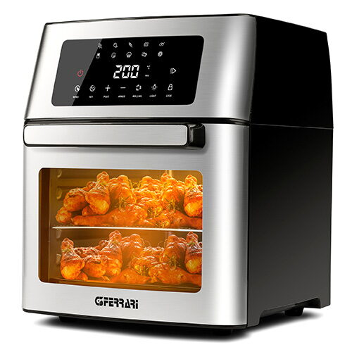 Horkovzdušná fritéza, mini trouba G3Ferrari g10182 15 l - Fritéza G3Ferrari Friggisano G1018200 představuje revolučního kuchyňského pomocníka, který vás nadchne možností připravovat oblíbené smažené pokrmy s mnohem menším obsahem tuku (až o 80 % méně). Technologie rychlé cirkulace vzduchu v kombinaci s vysokou teplotou až 200 °C vám umožní vařit zdravě a chutně bez použití oleje, přičemž si zachováte tu pravou křupavost tradičních smažených jídel. Tento multifunkční spotřebič s prostorným objemem 15 litrů a výkonem 1700 W tak potěší celou vaši rodinu.