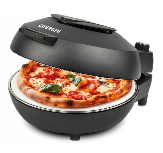 Pizza pec G3Ferrari G10199 - pec na pizzu • vyjímatelná kamenná deska o průměru 31 cm • 2 samostatná topná tělesa • příprava pizzy za pouhé 4 minuty • teplota až 420 °C • 5 teplotních stupňů • otočné ovladače • nerezové lopatky o průměru 28 cm • příkon 1200 W • hmotnost 5,2 kg