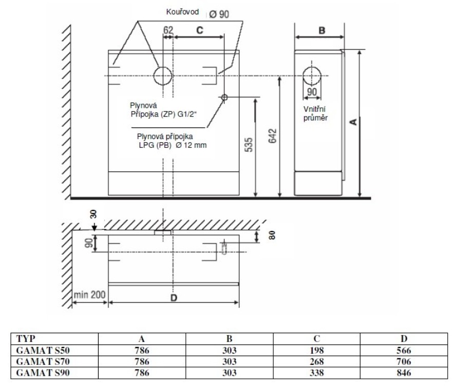 Gamat S50 - o výkonu 5,3 kW s odtahem spalin do komína a velmi jednoduchou obsluhou. Mají nadčasově elegantní design.