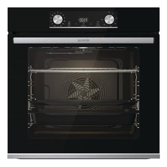 Gorenje BOSX6737E13BG - vestavná trouba • objem 77 l • příkon 3500 W • 11 druhů ohřevu • mechanické knoflíkové ovládání • ExtraSteam • SuperSize • programovací hodiny IconLed • SoftOpen a GentleClose • HomeMade Plus • AirFry • DynamicCooling+ • 59,5×59,5×56,4 cm