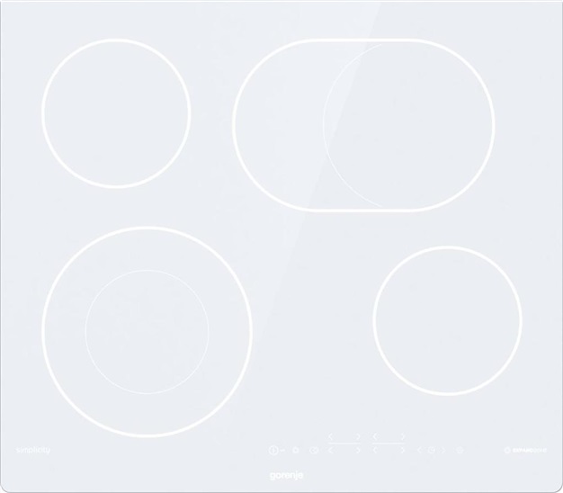 Rozměry VxŠxH v mm (54x600x520), hmotnost 7,7 kg, maximální příkon 7000 W, 4 plotýnky, dotykové ovládání, materiál sklo, dětská pojistka, indikátor zbytkového tepla, časovač, automatické vypnutí, oválná zóna, booster, bílá barva