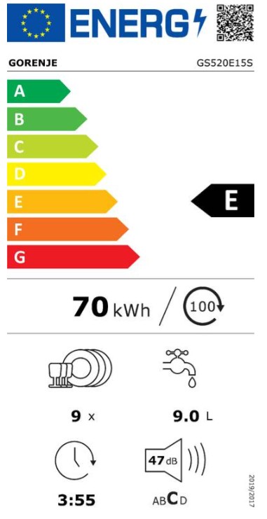 myčka nádobí • energetická třída E • kapacita 9 sad nádobí • hlučnost 47 dB • 5 programů • produktová řada Essential • samočisticí filtr • teplota v rozmezí od 35 do 65 °C • ECO program • rychlý program • lze použít tbalety 3v1 • dotyková tlačítka • funkce Total AquaStop • 84,5×44,8×60 cm