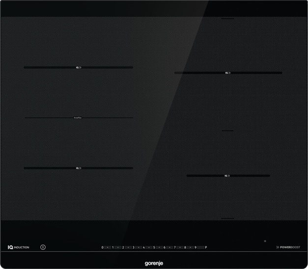 Indukční varná deska, černá, dotykové ovládání SLIDER, broušené hrany, 4 osmiúholníkové induktory, 1x AreaFlex, StepZone, IQ programy, přednastavené funkce vaření, PowerBoost, 230/400 V, černá, 5,4 × 60 × 52,5 cm