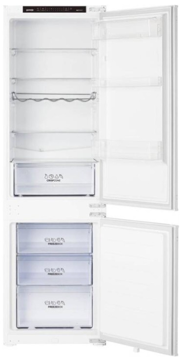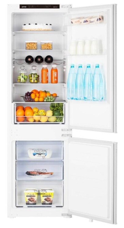 Chladnička s mrazničkou Gorenje Primary NRKI418EP1 bílé - vestavná chladnička s mrazákem • výška 177, 2 cm • objem chladničky 1863 l / mrazničky 63 l • energetická třída E • 15 let záruka na kompresor • funkce SuperCool - pro rychlé zachlazení potravin • technologie FrostLess – eliminuje námrazu na potravinách a tvorbu ledu • možnost změny směru otevírání • hlučnost 38 dB • LED display • V × Š × H: 177, 2 × 54 × 54 cm