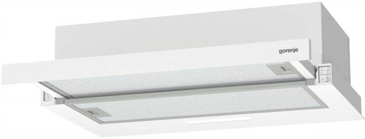 Digestoř - výsuvná, šířka 60 cm, uhlíková, bílá barva, energetická třída C, hlučnost 67 dB, výkon odsávání 350 m?/h, 2 filtry, tukový filtr, průměr horního vývodu 15 cm, s možností recirkulace, s LED osvětlením, vhodná do menší kuchyně (do 20 m?)