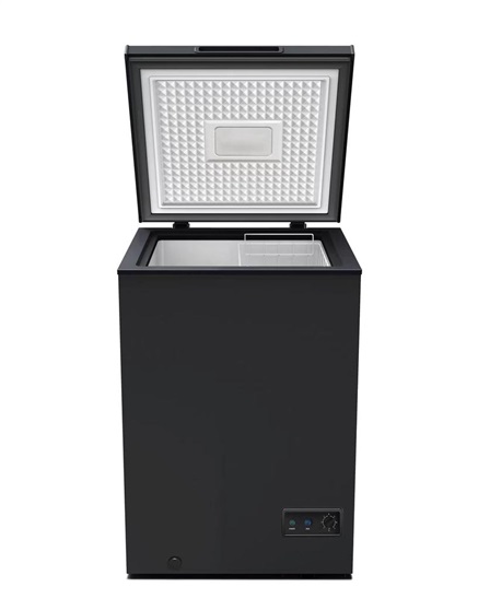 pultová mraznička • energetická třída E • celkový objem 93 l • termostat • vnitřní LED osvětlení • mrazicí kapacita 4,7 kg za 24 h • hlučnost 42 dB • klimatická třída ST, T • vyjímatelný drátěný koš • manuální odmrazování • 84,5×57,4×56,4 cm