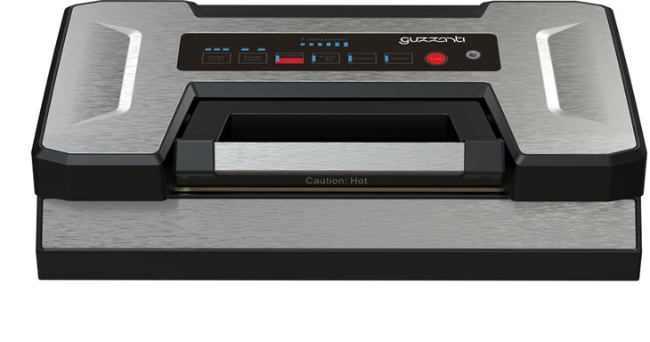 Vakuová svářečka fólií Guzzanti GZ 308DP; Výkonná vakuová svářečka fólií pro domácí a profesionální použití; Moderní vzhled a luxusní povrchová úprava z kartáčované nerezové oceli; Kompaktní rozměry umožňující práci se sáčky až do šíře 30 cm; Velmi výkonná, dvojitá pumpa