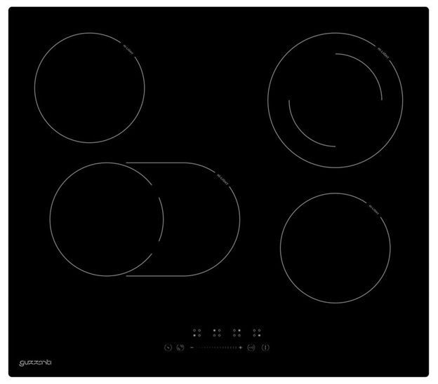 2x duozóna – 1x oválná, 1x rozšířená • Dotykové ovládání • Napětí 220 – 240 V • Příkon 6200 W • Levá zadní zóna 1200 W o Levá přední zóna 2000 W • Pravá zadní zóna 2000 W •Pravá přední zóna 1200 W • 9 stupňů • Časovač 1-99 min • Senzor teploty • Ukazatel zbytkového tepla • Dětská pojistka