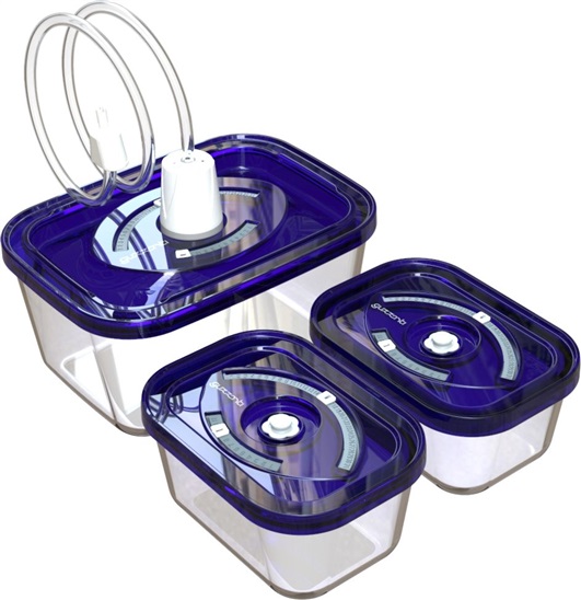 Set 3 skleněných vakuovacích nádob s hadičkou pro připojení k vakuovačce• 2 x 500 ml + 1 x 1500 ml a adaptér• Určené k vakuovým svářečkám potravin Guzzanti• Zdravotně nezávadné a certifikované materiály, sklo, ABS a silikon• Možnost vyznačení dne a měsíce na víku ná