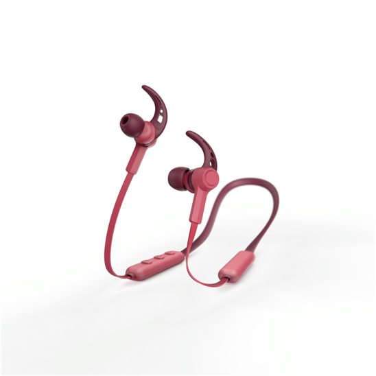 lehká bezdrátová in-ear Bluetooth sluchátka s mikforonem, lehká konstrukce, potu odolný materiál, magnetické konce sluchátek, plochý kabel (0,65 m), silikonové špunty s háčkem, Bluetooth 4.2, citlivost 96 dB +/-3 dB, impedance 32 ohmů, integrovaný akumulátor Li-Pol 3,7V/120 mAh, červená