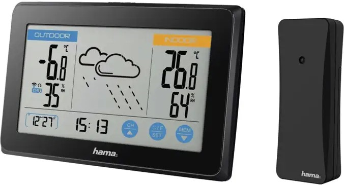 Meteostanice Hama 186314 Touch je moderní a přehledný pomocník pro sledování počasí a klimatických podmínek ve vaší domácnosti i v jejím okolí. Díky stylovému designu a intuitivnímu dotykovému ovládání získáte okamžitý přehled o aktuální teplotě, vlhkosti, čase i předpovědi počasí. Bezdrátové čidlo umožňuje měřit podmínky i venku, zatímco barevný displej vás informuje o všem důležitém na první pohled. Meteostanice je vhodná pro umístění na zeď nebo na stůl a automatická synchronizace času (DCF) zajistí vždy přesné údaje.