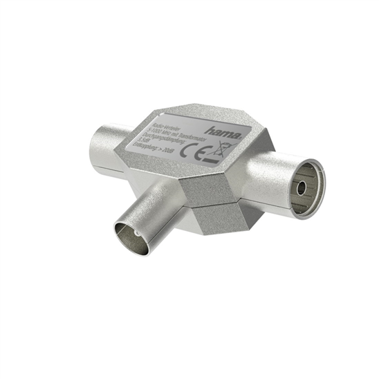pro připojení dvou rozhlasových přijímačů k anténní zásuvce, koaxiální rozbočovač s transformátorem (hybridní), kovový, plně stíněný, frekvenční rozsah 4 až 1000 MHz, průchozí útlum cca 3,5 dB, oddělení cca 22 dB