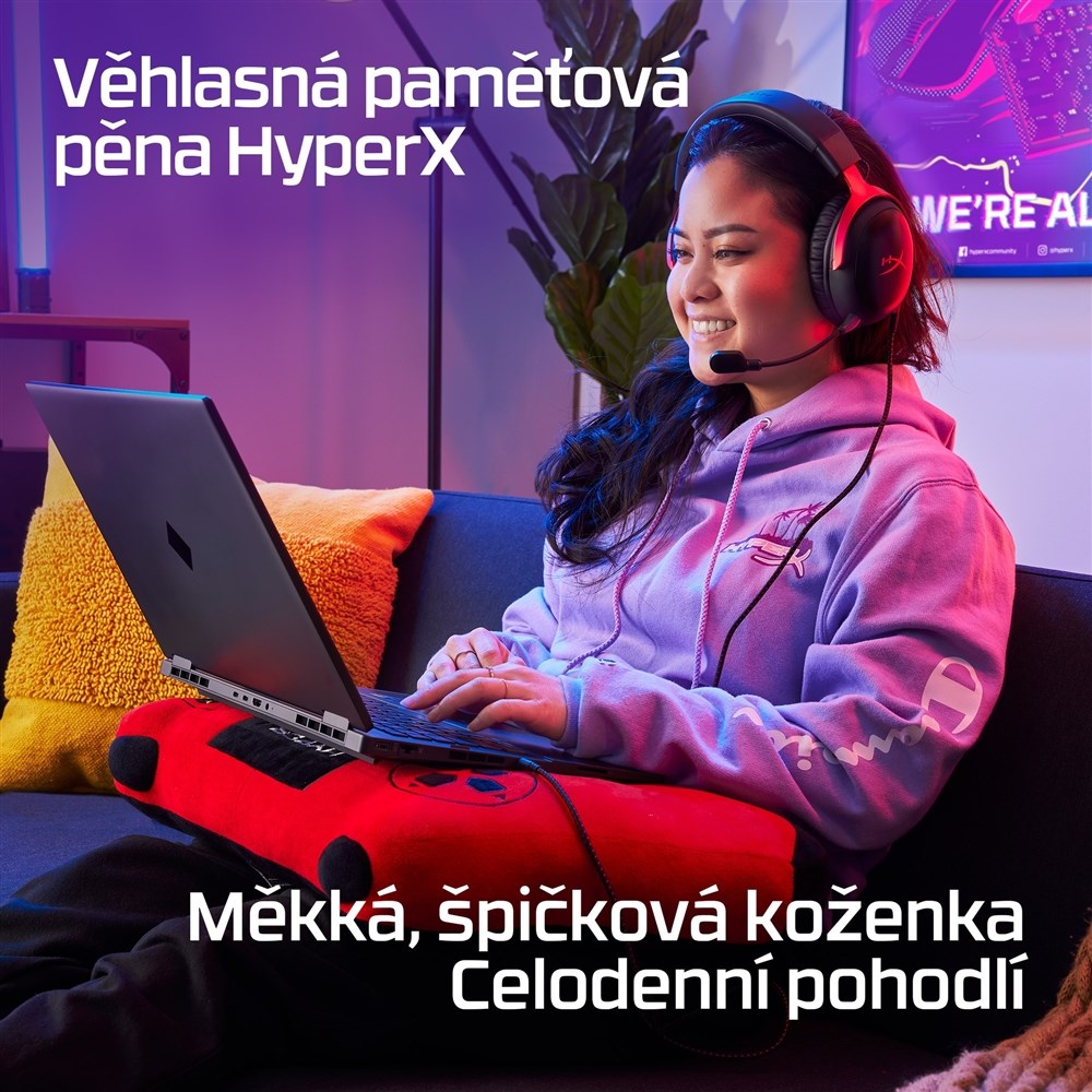 HyperX Cloud III red - sluchátka přes hlavu • citlivost 100 dB • frekvenční rozsah 10 – 21000 Hz • impedance 64 Ohm • délka kabelu 1,2 m • mikrofon • DTS Spatial Audio • 53mm měniče • 3,5 mm Jack • USB-A, USB-C • odpojitelný kabel