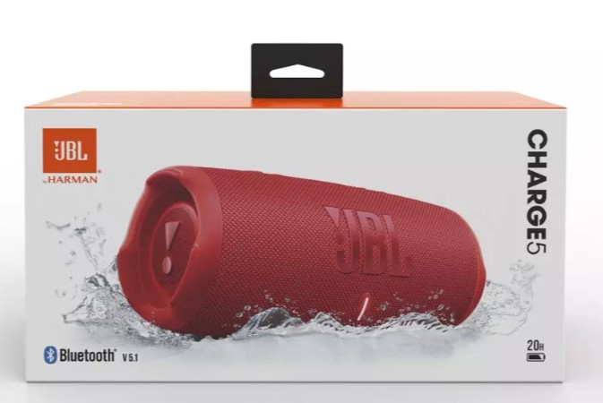 JBL Charge 5 red - bezdrátový reproduktor • Bluetooth 5.1 • odolnost vůči vodě a prachu IP67 • 7500mAh baterie • výdrž až 20 hodin • výkon 30 W (RMS) woofer, 10 W (RMS) tweeter • USB-C nabíjení • hmotnost 0,96 g