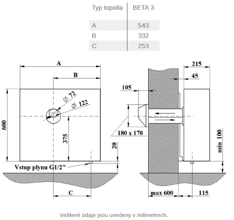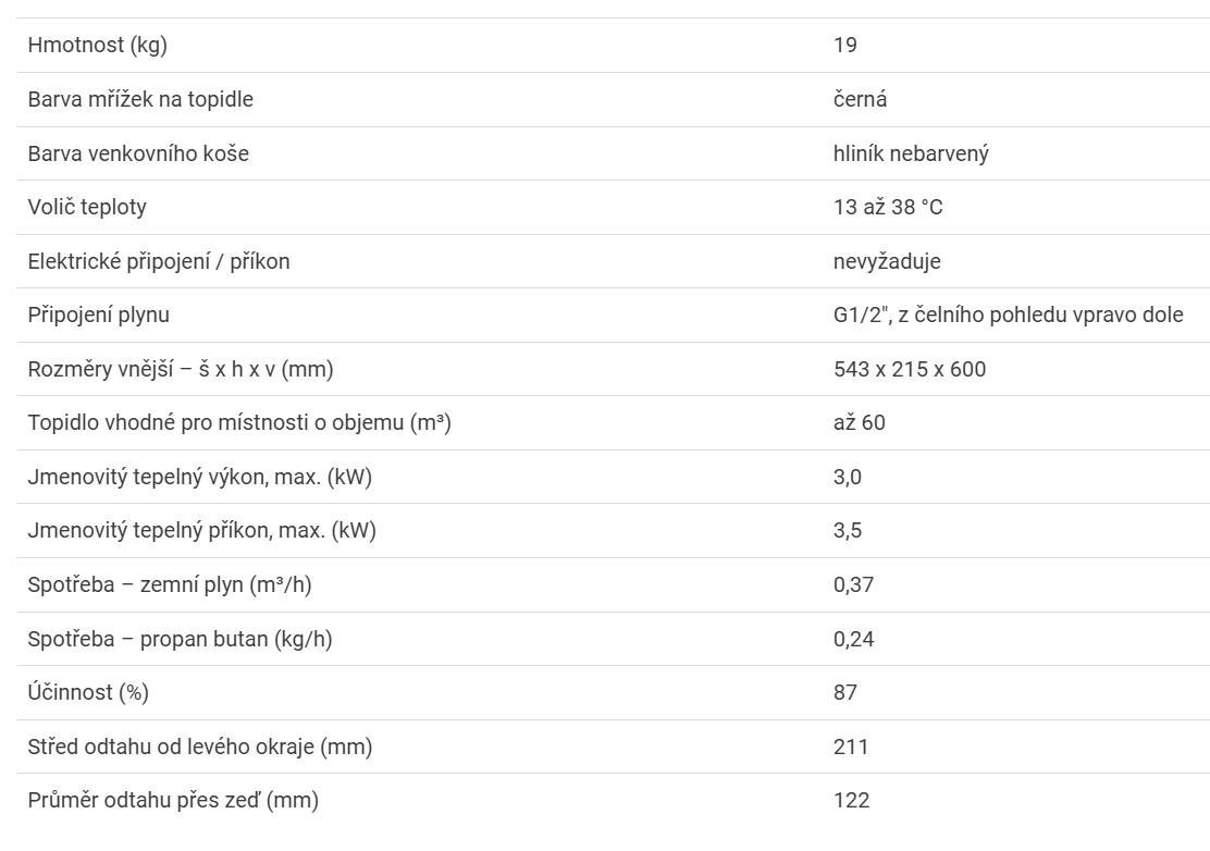 Plynové topidlo o výkonu 3 kW s odtahem spalin přes zeď a velmi jednoduchou obsluhou. Topidlo je vybaveno mechanickou regulací teploty.