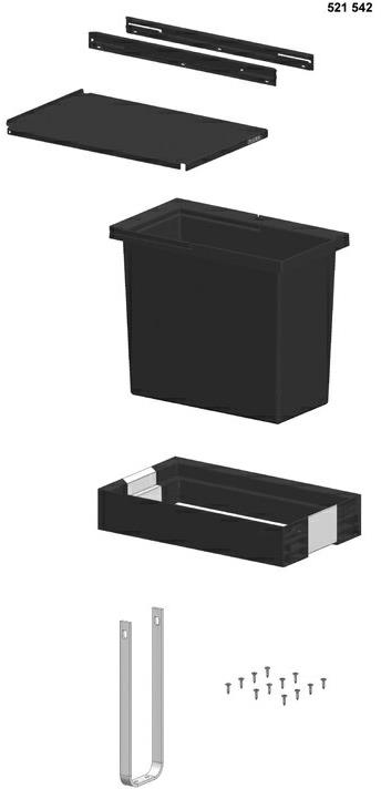 - Při plánování výšky zabudování odpadu zohledňujte výšku podesty zásuvkové skříňky, hloubku zabudování u dřezu s odtokovou sadou a z toho vyplývající nejnižší míru spodní skříňky.