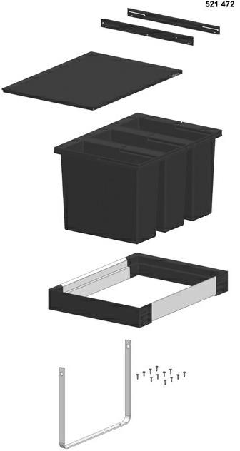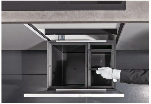 - Při plánování výšky zabudování odpadu zohledňujte výšku podesty zásuvkové skříňky, hloubku zabudování u dřezu s odtokovou sadou a z toho vyplývající nejnižší míru spodní skříňky.