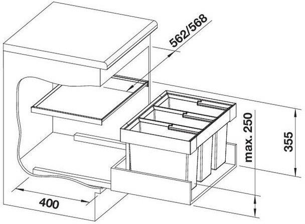 - Možnost zabudování do spodních skříněk s kazetovými dveřmi od délky rámu 90 mm.