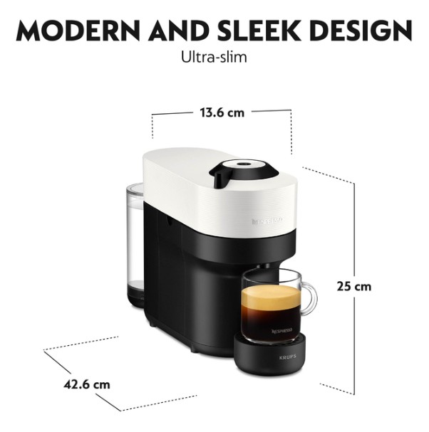 Kávovar Nespresso Vertuo POP KRUPS v kokosově bílé barvě nabízí jednoduchou obsluhu jedním tlačítkem, rychlý ohřev a možnost přípravy různých druhů kávy. Díky kompaktním rozměrům je ideální i do menších prostor. Podpora chytrých funkcí přes Wi-Fi/Bluetooth a moderní design ocení každý milovník kvalitní kávy.