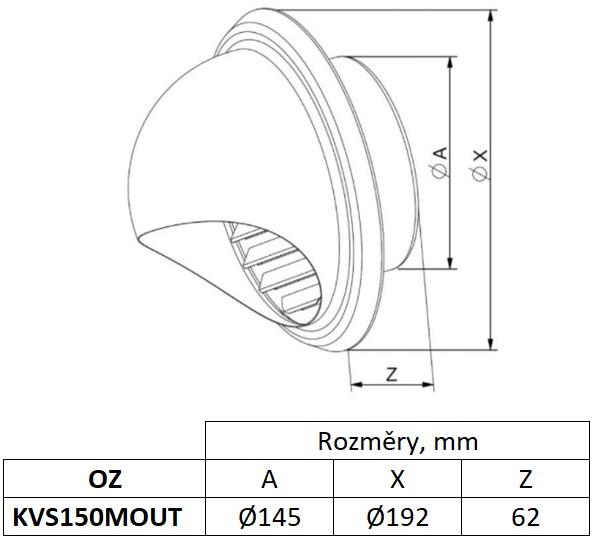 Tento kruhový prvek je určen k dokončení průchodu vzduchu skrz stěnu. Je vyroben z chrom nikl oceli pro průměr 150 mm. Má půlkruhový kryt chránící větrací kanál před povětrnostními vlivy. Je vhodný pro instalaci v různých typech staveb.