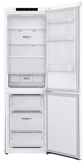 342 l, (234+107),LG Smart invertorový kompresor(10 let záruka) Total No Frost + MultiAir Flow, DoorCooling, interní LED display, energetická třída E, hlučnost 36 dB, spotřeba: 253 kWh/rok., Smart Diagnosis, Zero Clearance, Rozměry V x Š x H(cm): 186 x 59,5 x 68,2