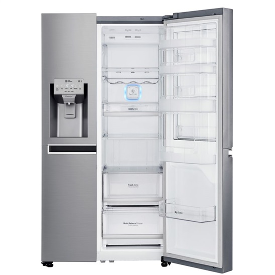 En.třída F,376 kWh/rok,39 dB,objem 601 (405/196)l,LG Lineární kompresor (záruka 10 let)+Total No Frost,PureNFresh,Multi Air Flow, Moist Balance Crisper™,Nápojový automat s výrobníkem ledu,NFC Smart Diagnosis™,Ochrana dveřního těsnění,Easy open madla – hor; Rozměry V x Š x H(cm): 179 x 91,2 x 73,8
