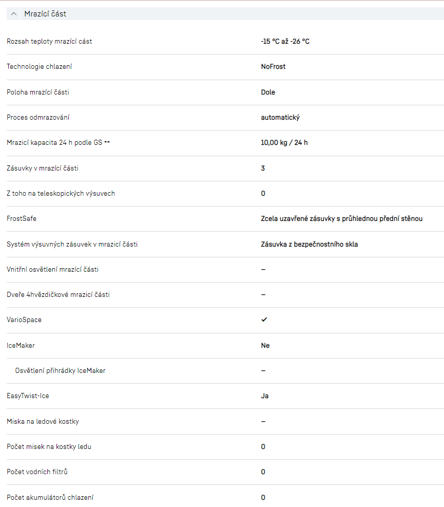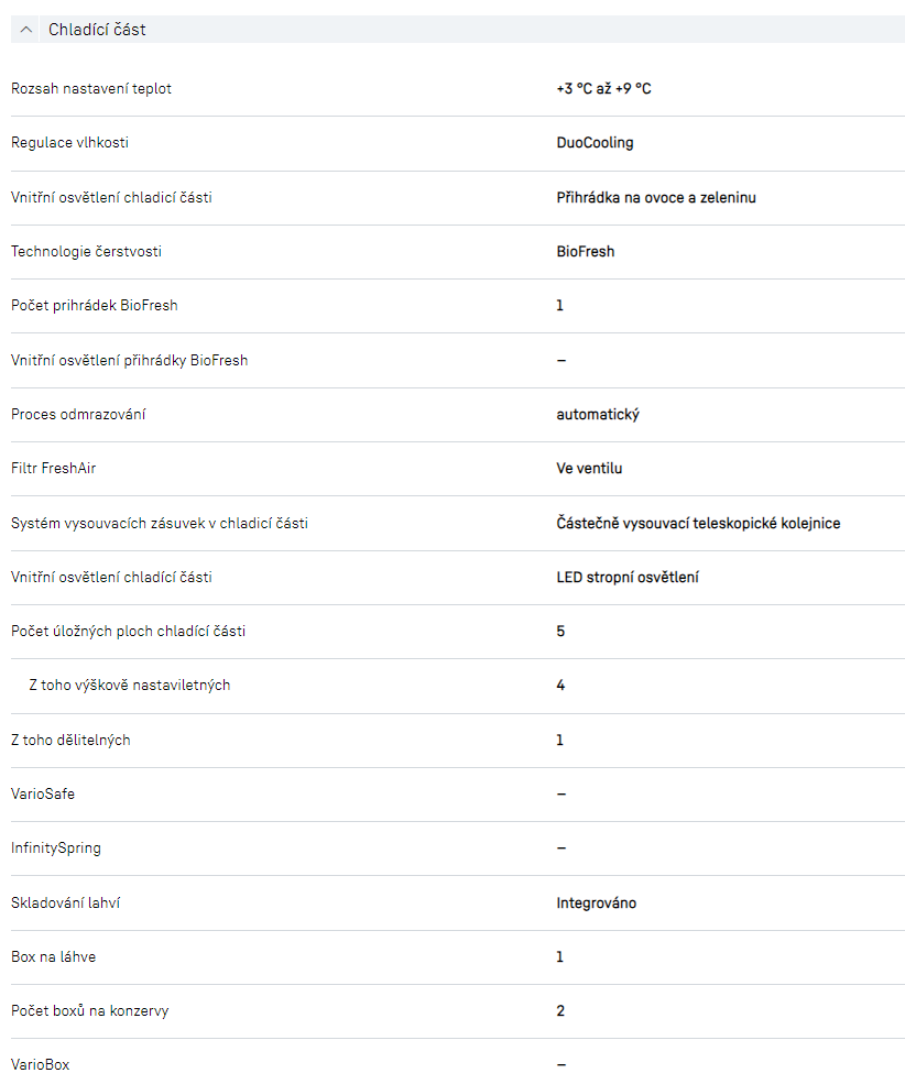Díky dvěma nezávislým chladicím okruhům odděluje chladicí a mrazicí část. To zabraňuje přenosu pachů mezi oddíly a udržuje optimální vlhkost i teplotu potravin.