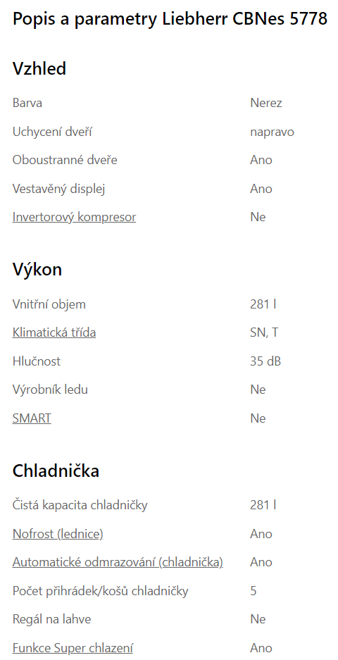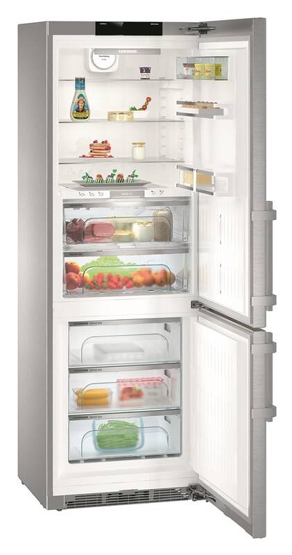 Liebherr CBNes 5778 je kombinovaná chladnička s mrazákem v dolní části. Dveře jsou v designu HardLine a jejich materiálem je ušlechtilá ocel s úpravou SmartSteel. Tato povrchová úprava dokáže výrazně snížit viditelnost otisků prstů. Nerezová ocel se snadno čistí a je odolná proti poškrábání. Hliníkové tyčové madlo má integrovaný otevírací mechanismus.