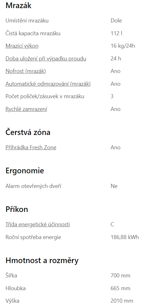 Díky technologii NoFrost se nemusíte starat o rozmrazování. Z uložených produktů se automaticky odebírá teplo pomocí cirkulace ledového vzduchu a vzdušná vlhkost je odváděna mimo úložný prostor mrazničky.