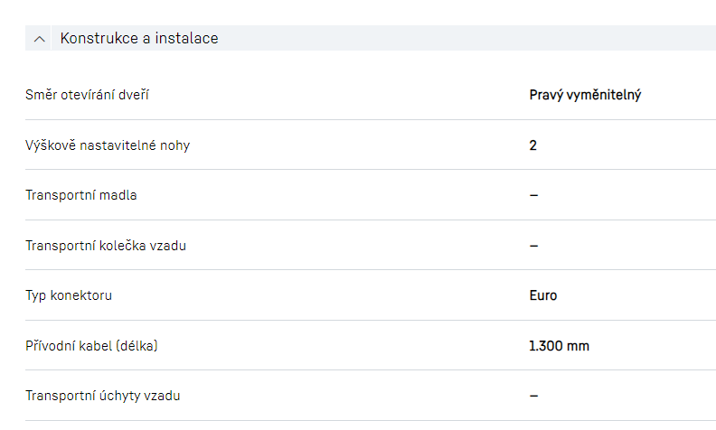 Přístroje se z výrobních závodu dodávají standardně s otevíráním dveří doprava. Možnost změnit směr otevírání dveří napomůže k dokonalé prostorové integraci a sladění s interiérem kuchyně. Pozor, existují ale výjimky. Například u modelů ECBN, kde je pouze trvalé levé nebo trvalé pravé umístění pantů.