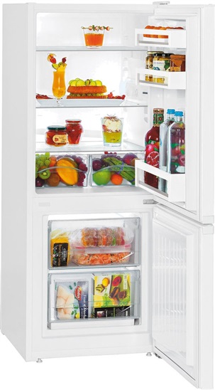 en.třída E; Kombinovaná chladnička se SmartFrost, objem 210l ( 156/54), CoolPlus, zapuštěné madlo, mechanické ovládání v interiéru, otočný regulátor, šířka 55cm, Bílá