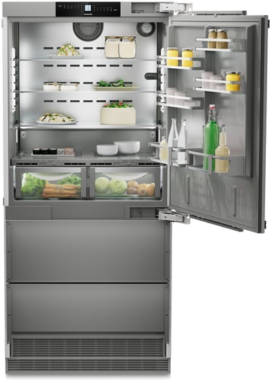 entř E; Vestavná kombinovaná chladnička s BioFresh a NoFrost, Pevné dveře, objem 522l (362/160), 39dB(A), DuoCooling, SuperCool/Frost, IceMaker, panty vpravo