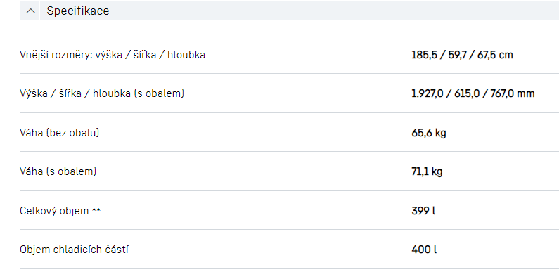 Vnější rozměry: výška / šířka / hloubka 185,5 / 59,7 / 67,5 cm