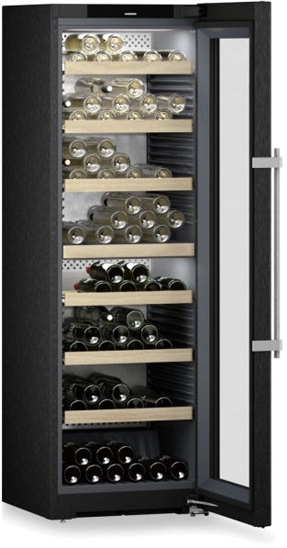 en.třída F; Vinotéka temperovaná 2 zónová, objem 367 l, max.počet lahví Bordeaux 0,75l- 155 ks, materiál polic: bukové dřevo, počet úložných ploch 8, integ. SmartDevice, LED osvětlení, Digitální ukazatel teploty pro 2 oddělené klimatické zóny, Teplotní rozsah +5°C až +20°C, Dveře: Izolační sklo, UV Protect Plus, madlo s integ. mechanikou, Černá