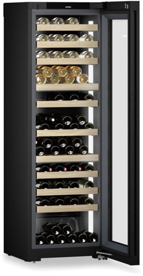 en.třída F; Vinotéka temperovaná 2 zónová, objem 367 l, max.počet lahví Bordeaux 0,75l- 106 ks, materiál polic: bukové dřevo, počet úložných ploch 10, integ. SmartDevice, Digitální ukazatel teploty pro 2 oddělené klimatické zóny, Teplotní rozsah +5°C až +20°C, Presentation Light, Zámek elektronický (bez DO), SuperSilent, Zapuštěné madlo, Dveře: Izolační sklo, UV Protect Plus, Černé sklo