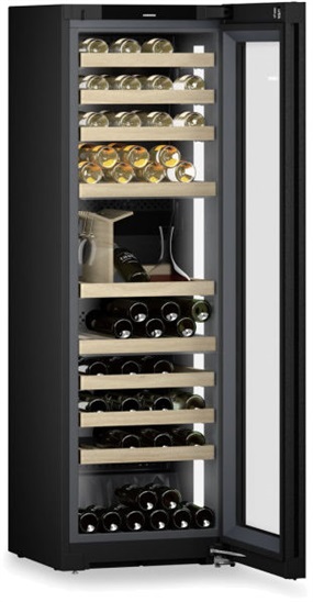 en.třída F; Vinotéka temperovaná 3 zónová, objem 357 l, max.počet lahví Bordeaux 0,75l- 85 ks, materiál polic: bukové dřevo, Sommelier board, počet úložných ploch 10, integ. SmartDevice, Digitální ukazatel teploty pro 3 oddělené klimatické zóny, Teplotní rozsah +5°C až +20°C, Presentation Light, Zámek elektronický (bez DO), SuperSilent, Zapuštěné madlo, Dveře: Izolační sklo, UV Protect Plus, Černé sklo