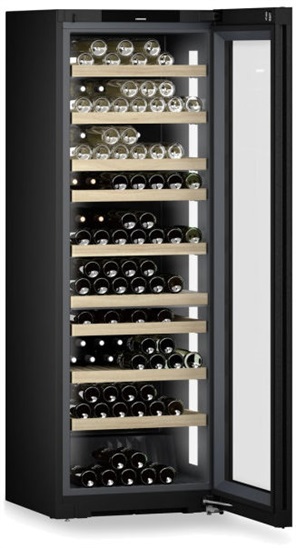 en.třída F; Vinotéka temperovaná 2 zónová, objem 575 l, max.počet lahví Bordeaux 0,75l- 204 ks, materiál polic: bukové dřevo, počet úložných ploch 10, integ. SmartDevice, Digitální ukazatel teploty pro 2 oddělené klimatické zóny, Teplotní rozsah +5°C až +20°C, Presentation Light, Zámek elektronický (bez DO), SuperSilent, Zapuštěné madlo, Dveře: Izolační sklo, UV Protect Plus, ČernéČerné sklo