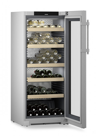 en.třída F; Vinotéka temperovaná 2 zónová, objem 272 l, max.počet lahví Bordeaux 0,75l- 107 ks, materiál polic: bukové dřevo, počet úložných ploch 6, SmartDevice ready, LED osvětlení, Digitální ukazatel teploty pro 2 oddělené klimatické zóny, HumiditySelect, Teplotní rozsah +5°C až +20°C, Dveře: Izolační sklo, UV Protect Plus, madlo s integ. mechanikou, SmartSteel
