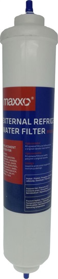 Maxxo FF0300A Náhradní filtrační patrona pro chladničky, které mají umístěný vodní filtr mimo ledničku na přívodu vody. Náplň z aktivního uhlí je vyrobena z přírodní kokosové pryskyřice, která odstraní chlór a dodá vodě le