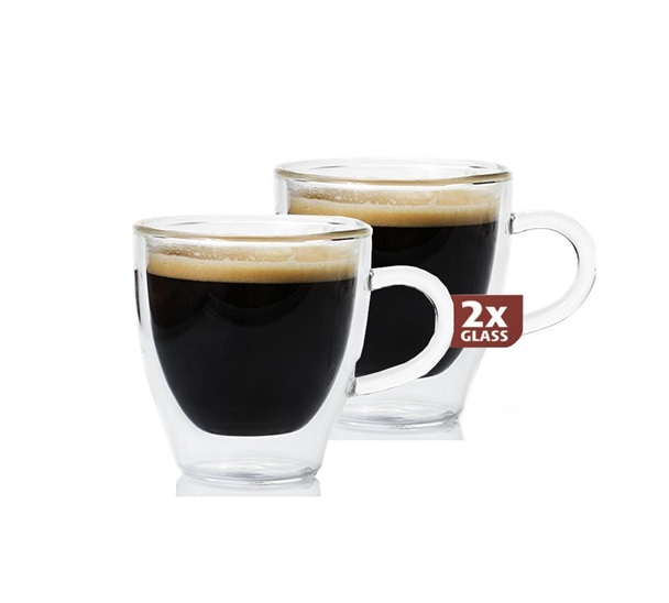 Dvojité TERMO borosilikátové sklo, Teplé a studené nápoje si udrží svou teplotu po dlouhou dobu, odolnější proti poškrábání, prasklinám, škrábancům, než tradiční sklo, objem 80ml, 2ks v balení