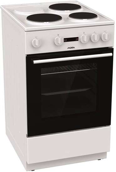 MORA E 2231 AW - elektrický sporák • nízká energetická náročnost • 3 litinové plotýnky • objem trouby 68 l • maximální příkon 3,68 kW • připojení k síti 230 V • 3 druhy ohřevu • ECO Clean • osvětlení trouby • chladná dvířka • 85 × 50 × 59,4 cm