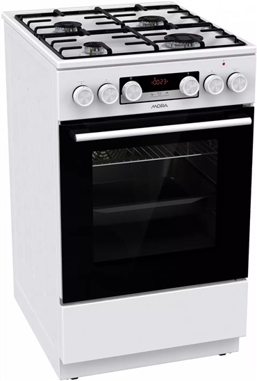 kombinovaný sporák • energetická třída A • 4 plynové hořáky s pojistkami STOP GAS (vlevo vpředu O 5,4 cm, 1 kW; vpravo vpředu O 9,9 cm, 3 kW; vlevo vzadu O 7,4 cm, 1,9 kW; vpravo vzadu O 7,4 cm, 1,9 kW) • objem multifunkční trouby 70 l • 11 druhů ohřevu • smaltovaná dvoudílná mřížka STABIL PLUS • integrované zapalování hořáků • digitální dotykový časový spínač s hodinami • možnost programování doby pečení • rychlý předehřev trouby • program PIZZA • program HOTOVÁ A MRAŽENÁ JÍDLA • program HORKOVZDUŠNÉ FRITOVÁNÍ BEZ TUKU • ECO CLEAN (funkce na čištění trouby) • regulace teploty v troubě v rozmezí 50–275 °C • osvětlení trouby • chladná dvířka • úložný prostor • jmenovitý příkon 3,3 kW • elektrické napětí 230 V • rozměry 85 × 50 × 59,4 cm • barva bílá • příslušenství: rošt, XXL hluboký pekáč