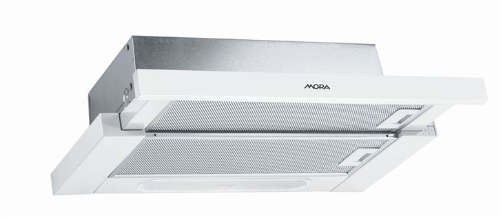 MORA OT 651 X - vestavná digestoř • odtah nebo recirkulace • 3 rychlosti výkonu • maximální výkon při odtahu 304 m3/h • maximální výkon při recirkulaci 145 m3/h • hliníkový tukový filtr • možnost recirkulace vzduchu po dokoupení uhlíkového filtru • maximální hlučnost 62 dB • tlačítkové ovládání • LED osvětlení • šířka 60 cm