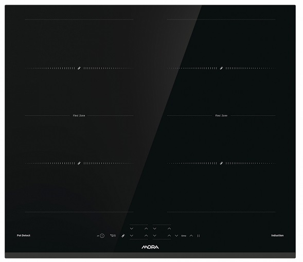 MORA VDIT 658 FF - indukční varná deska • 4 varné zóny • připojení k síti 400 V • maximální příkon 7360 W • 9 stupňů výkonu • 5 automatických programů SmartCooking • varné zóny FlexiZone • funkce SuperBoost • funkce KeepWarm • funkce PotDetect • automatické vypnutí • časovač • dětská pojistka KeyLock • paměťová funkce Memory • dotykové ovládání • 59,5 cm