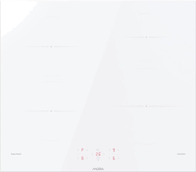 indukční vestavná sklokeramická deska; broušené hrany; 4 indukční varné zóny (1x 230 mm 1,5/2 kW, 2x 180 1,5/2 kW, 1x 145 mm 1,2/1,6 kW); plynulá regulace výkonu 0–9; signalizace funkce; funkce SuperBoost (extra výkon u všech varných zón); funkce Timer (časový spínač varných zón s auto vypnutím)