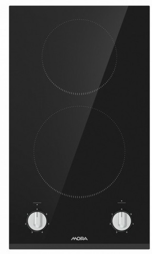 přední hrana zkosená, ostatní broušené, ovládání výkonu knoflíky, 2 Hi–Light varné zóny, 1x 180 mm 1,7 kW, 1x 145 mm 1,2 kW, ukazatel zbytkového tepla, plynulá regulace výkonu, signalizace funkce, elektrické napětí: 230/400 V, jmenovitý příkon: 2,9 kW, barva černá